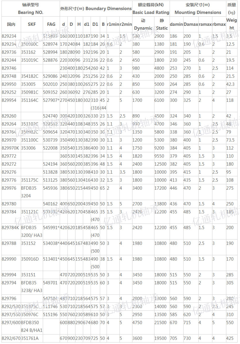 該類型軸承為分離型軸承,可分別安裝軸圈、座圈及保持架組件,可承受較大的雙軸向負荷,不能承受徑向負荷,主要應(yīng)用于軋鋼機軋輥的軸向定位。相對于其他定位軸承,承受同等軸向負荷,外形尺寸***小。極限轉(zhuǎn)速相對于球軸承較低。