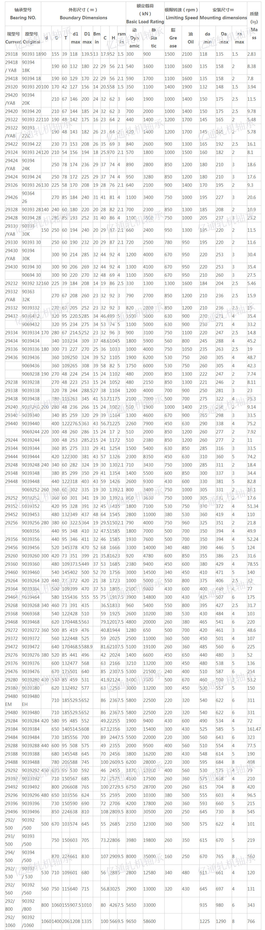 推力調(diào)心滾子軸承參數(shù)